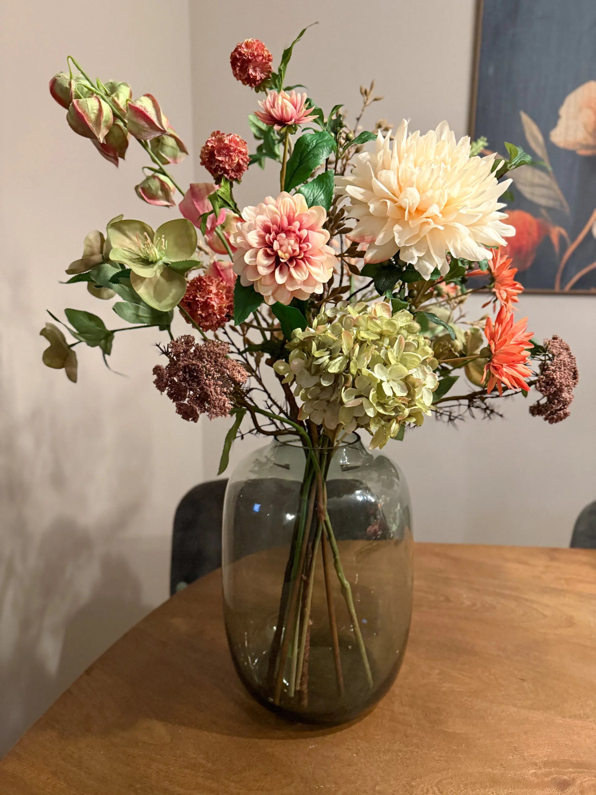 Prachtige kunstbloemen gekocht bij Daphne. Ze heeft heel goed advies, ideeën en tips gegeven.