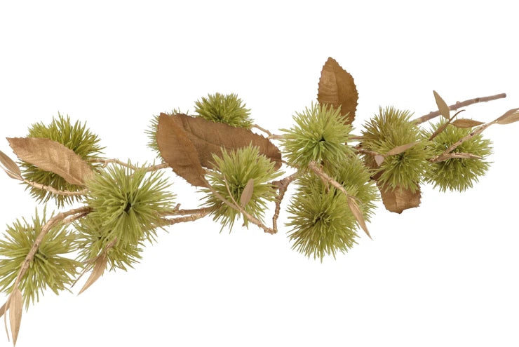 Deze elegante kastanjetak brengt direct een feestelijke sfeer in huis. De subtiele gouden accenten geven een warme, chique uitstraling die perfect past bij de decembermaanden. Prachtig in een vaas op zichzelf of als glanzend detail in een winterboeket.